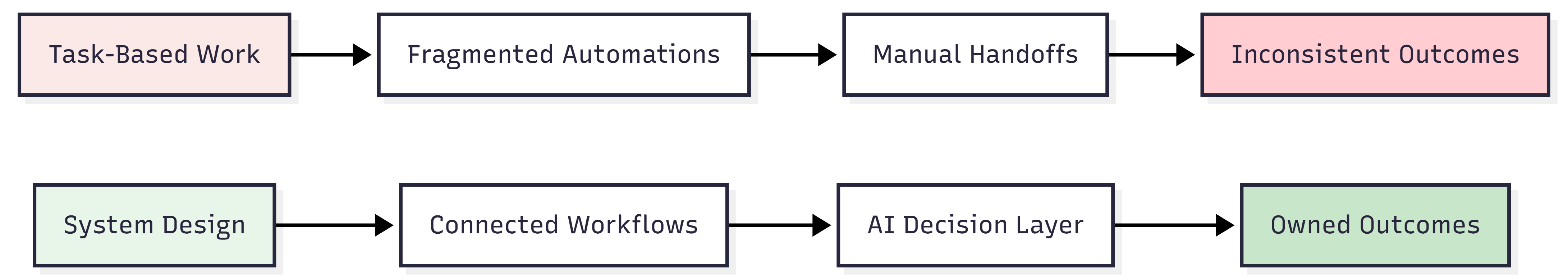 Across implementations, the shift from fragmented automation to outcome-driven systems consistently drives measurable business gains within the first 6–12 weeks when scoped correctly.